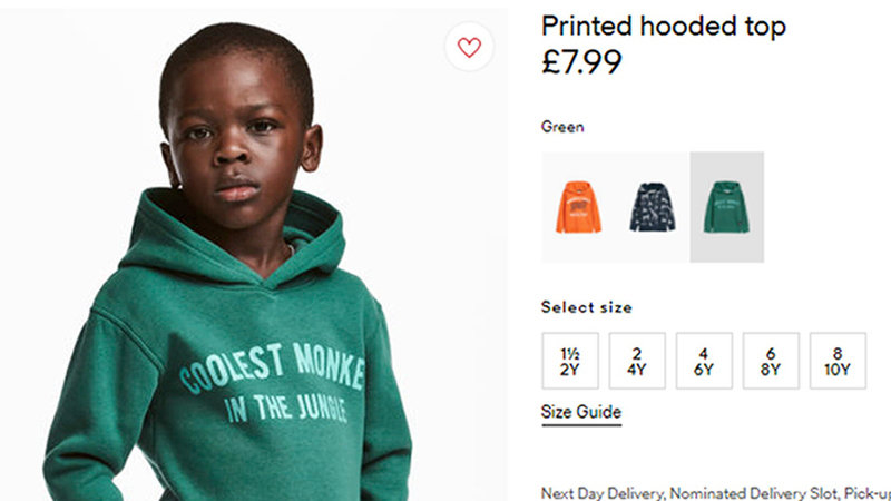 H&M avait subi un bad buzz en 2018 suite à cette photo avec un petit garçon noir portant un sweat avec l’inscription « Coolest monkey in the jungle » (« Le singe le plus cool de la jungle »).